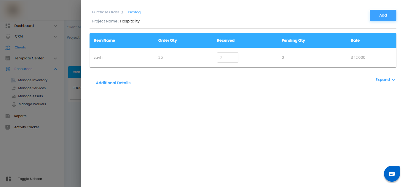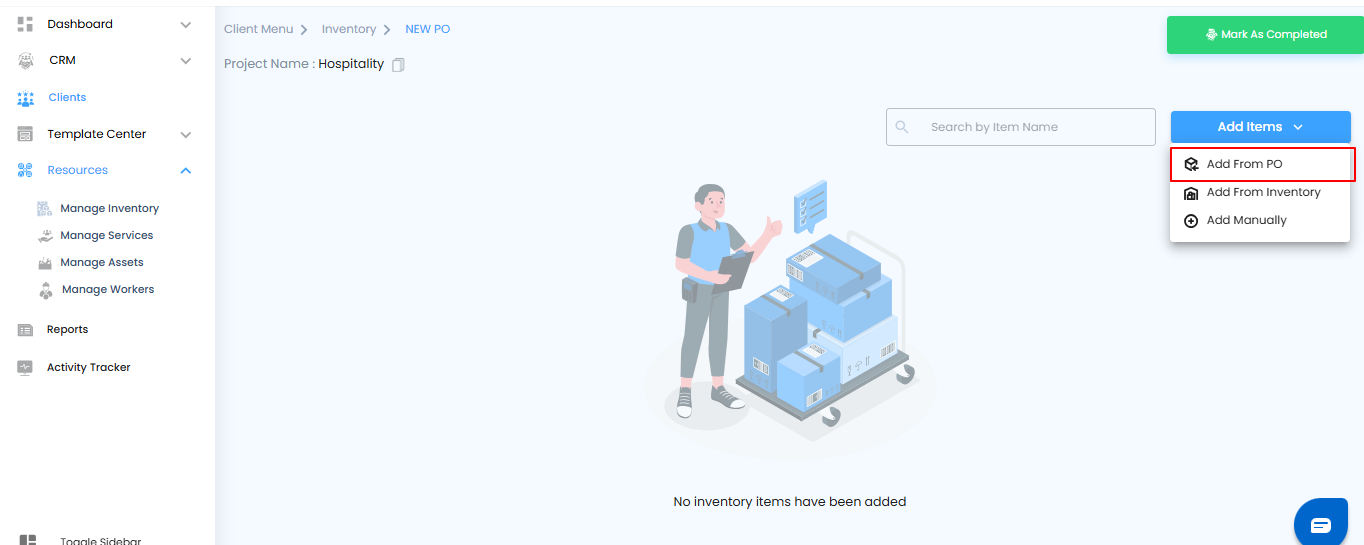 - From the list, click Add from PO.