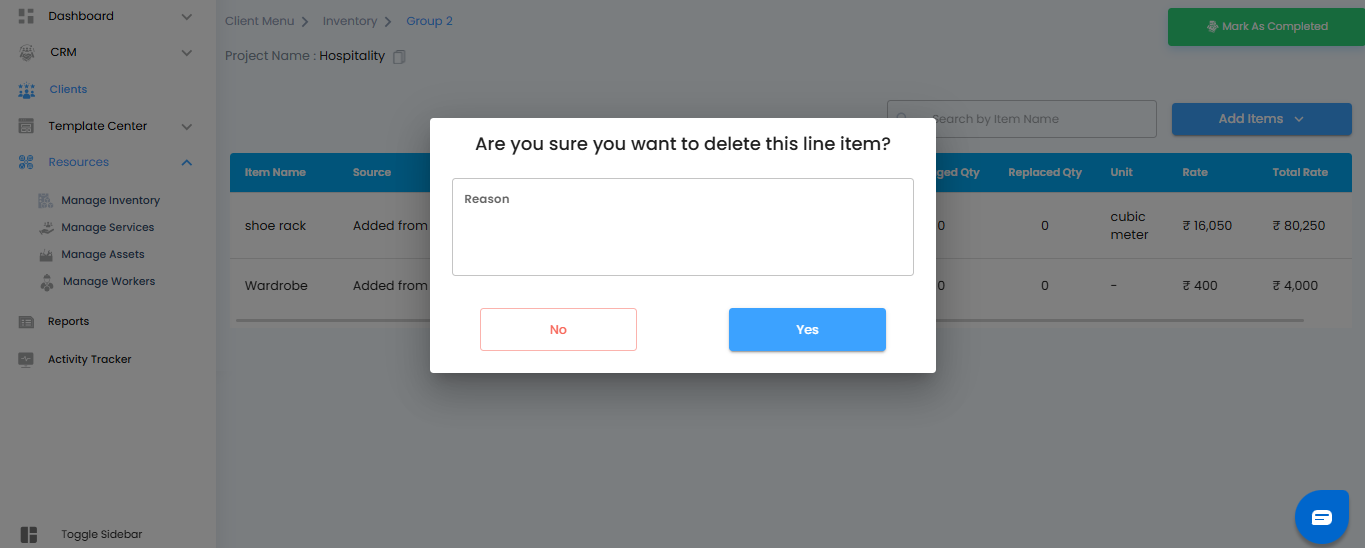 Pro Tip: Use the delete option carefully. Once deleted, the item is removed from the group’s inventory table, so double-check that it’s no longer needed before confirming.