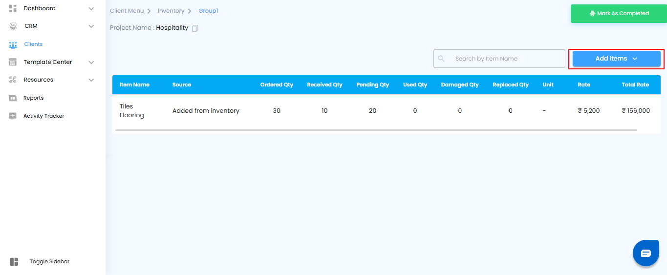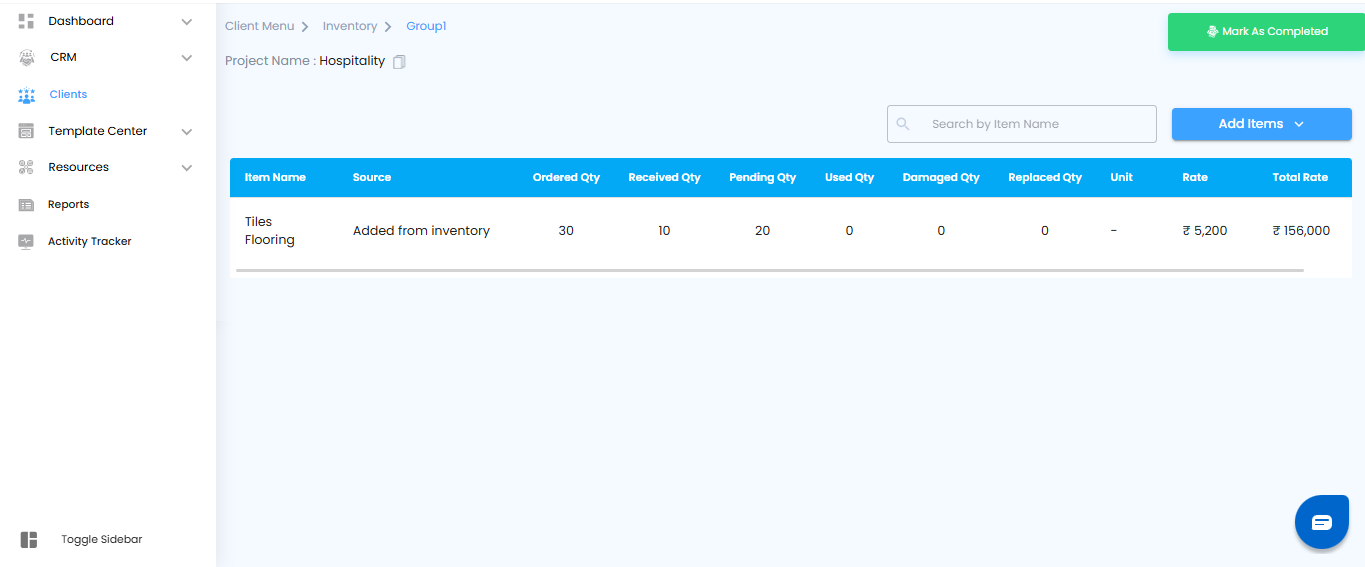 - The item will now be added to the group’s inventory and will appear in the Items Table, ready for tracking, usage, or further management.