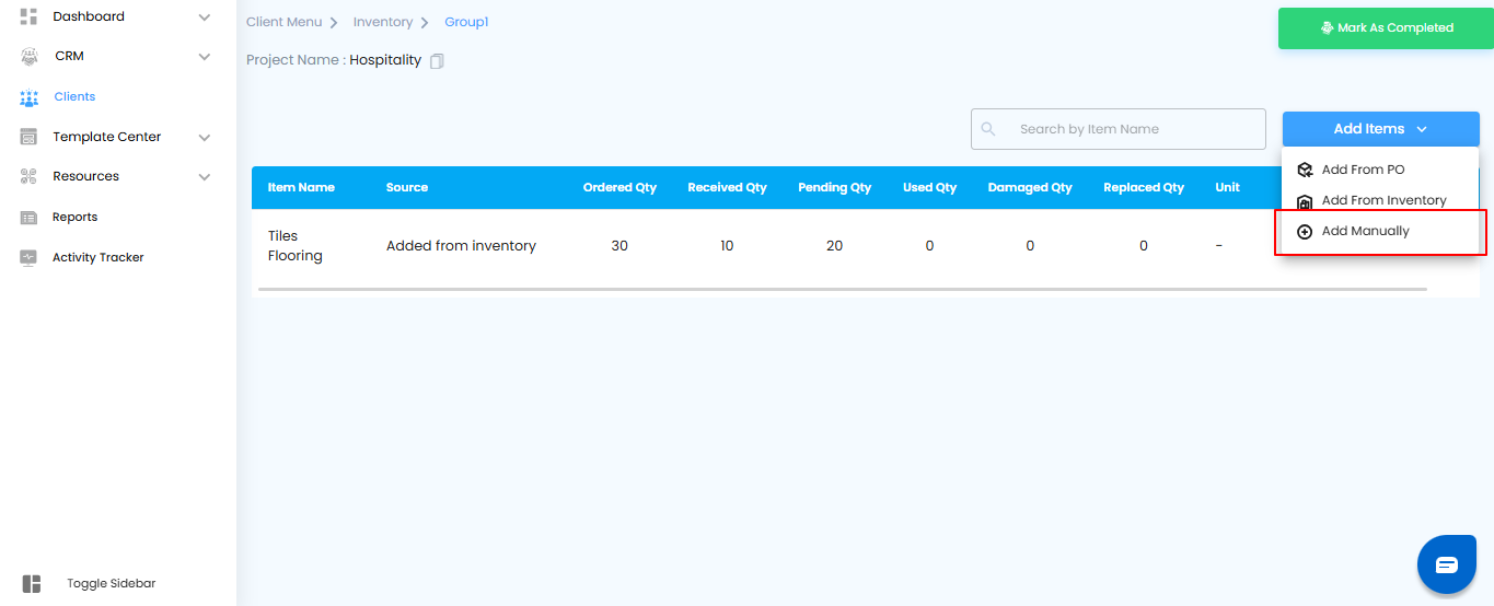 In the world of project management and procurement, not every item comes ready-made in a predefined list. With INTOAEC’s Add Manually feature, you can effortlessly include new products, special orders, or custom items into your inventory. This keeps your stock organized, up to date, and perfectly suited to your project’s unique needs—all in just a few clicks.