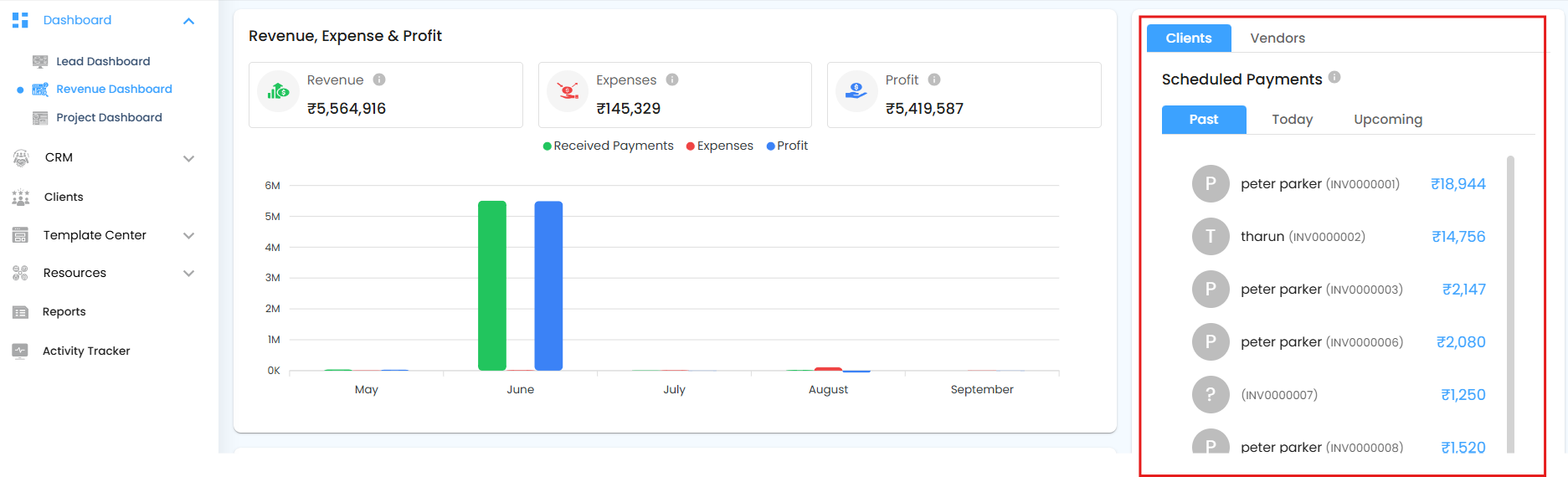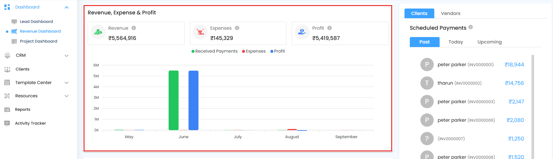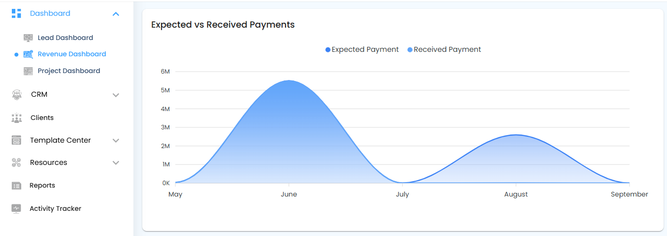 - Expected Payments – Represents the total amount of all invoices issued to clients.