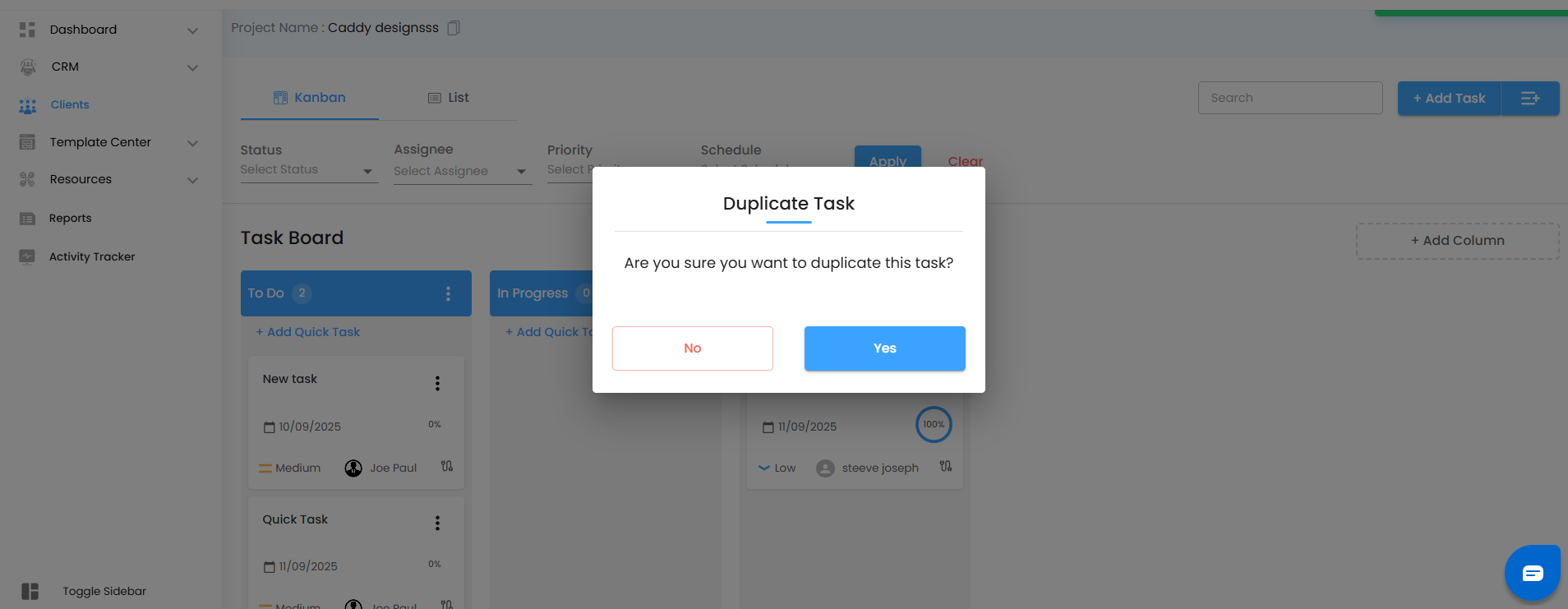 - A sleek popup will appear, titled “Duplicate Task”, asking: