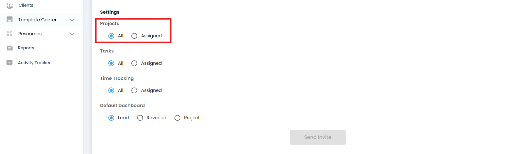 - Assigned – Restricts access to only the projects specifically assigned to the user.