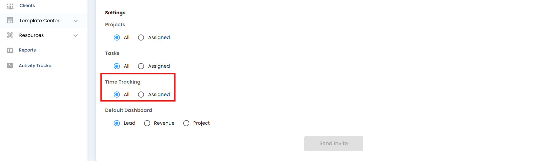 - Enable or Disable Time Tracking: Decide if the user should log hours for tasks.