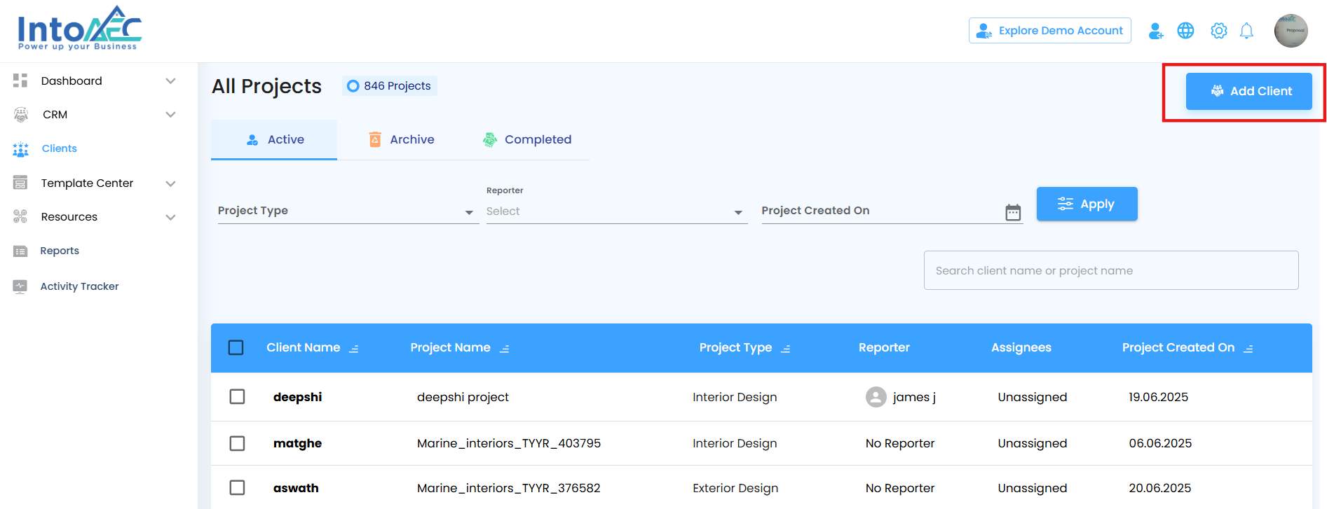 - Go to the Clients module from the main menu.