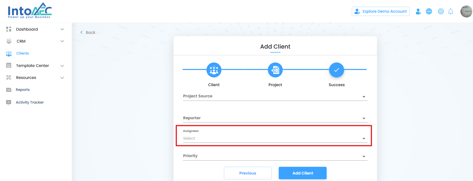 - After completing the form and selecting assignees, click the Create Client button.