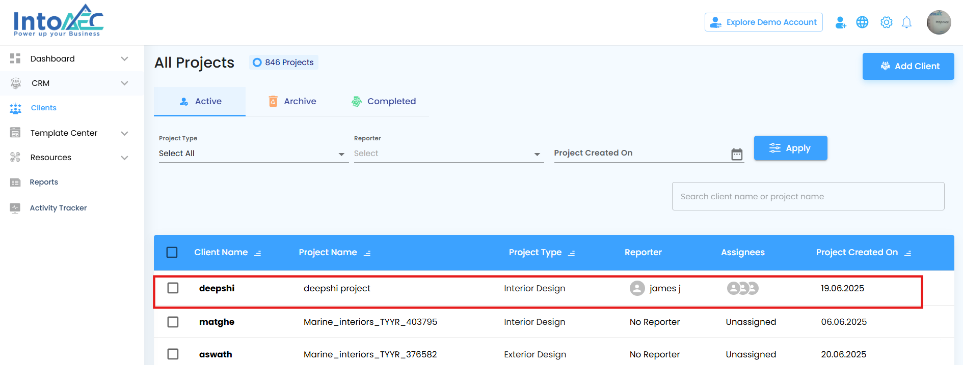 - Click on the client name or row to open the detailed view.
