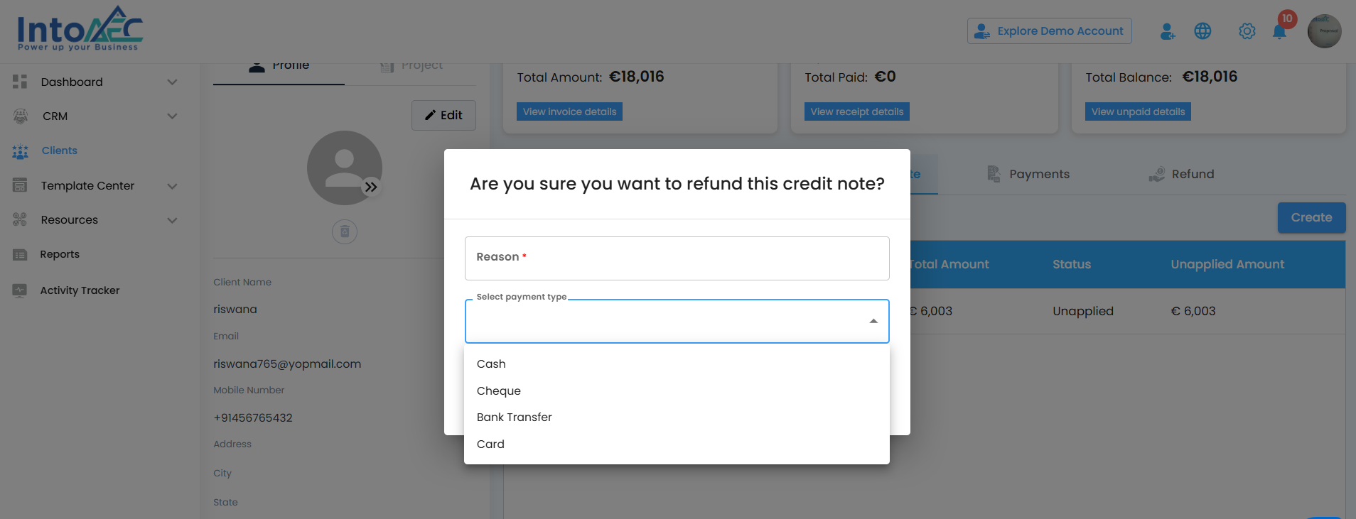 “Are you sure you want to refund this credit note?”Fill in the following: