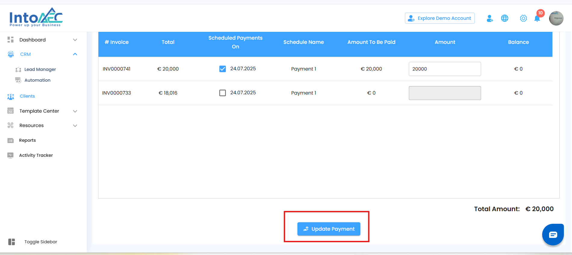 - Amount to Be Paid-Displays the pending amount that is due for the respective schedule or invoice.