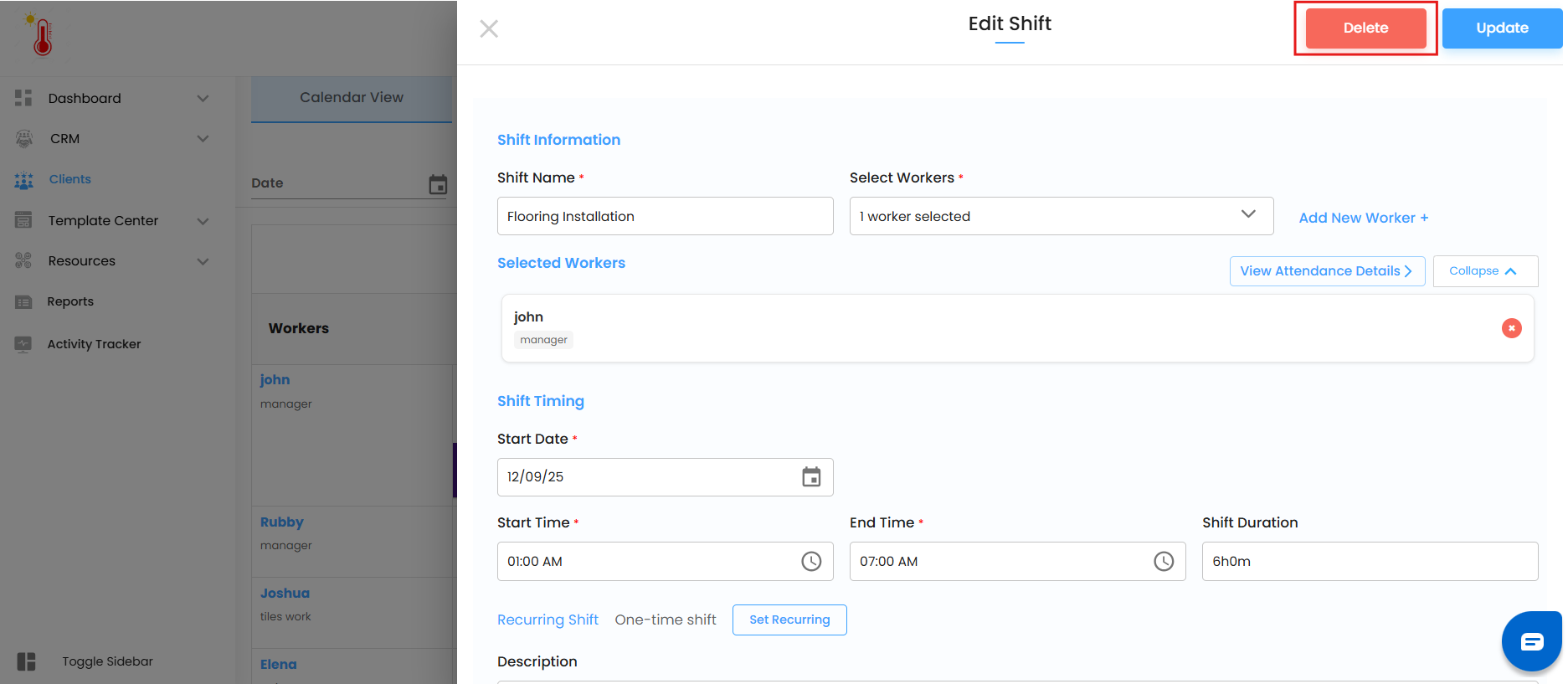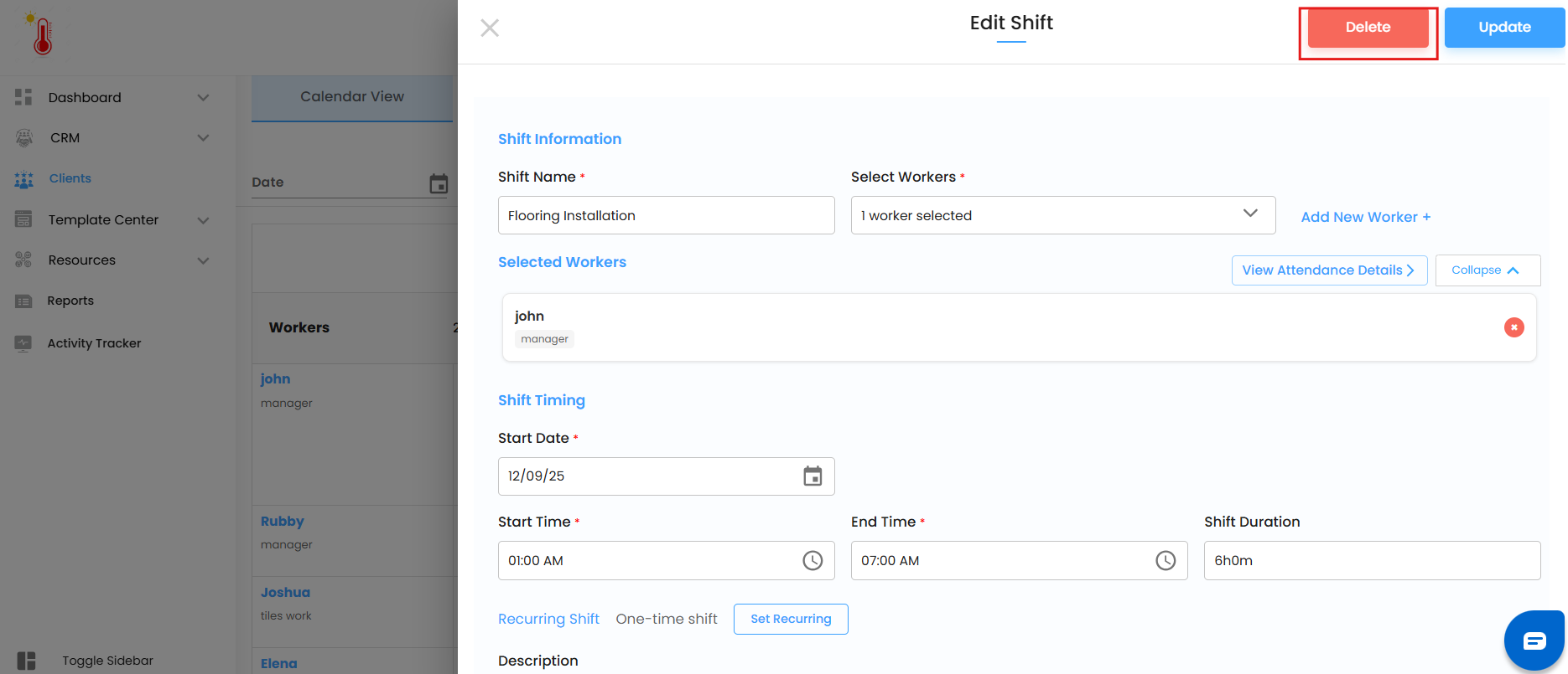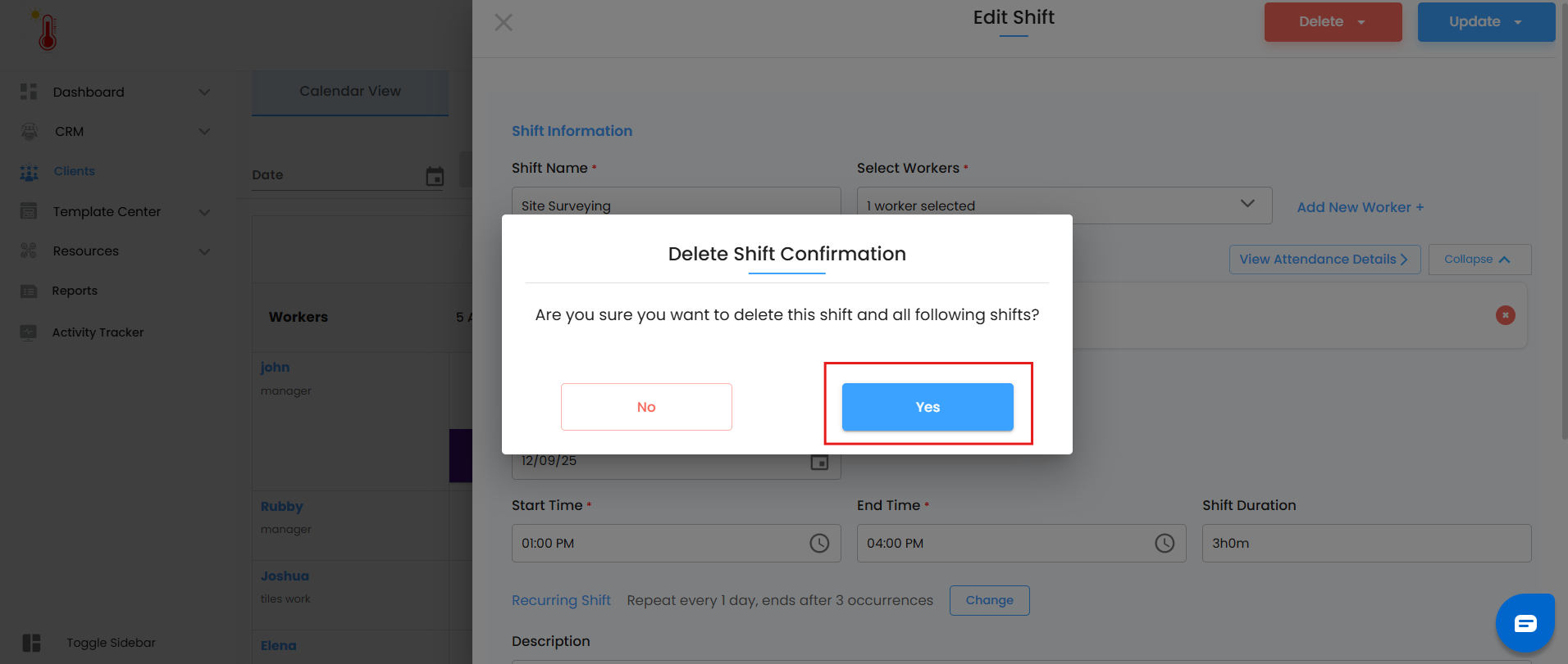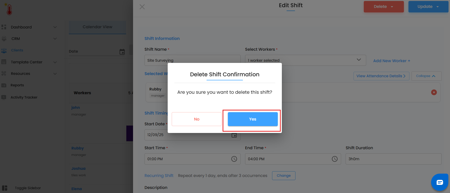 - A confirmation popup appears: - “Are you sure you want to delete this shift?”