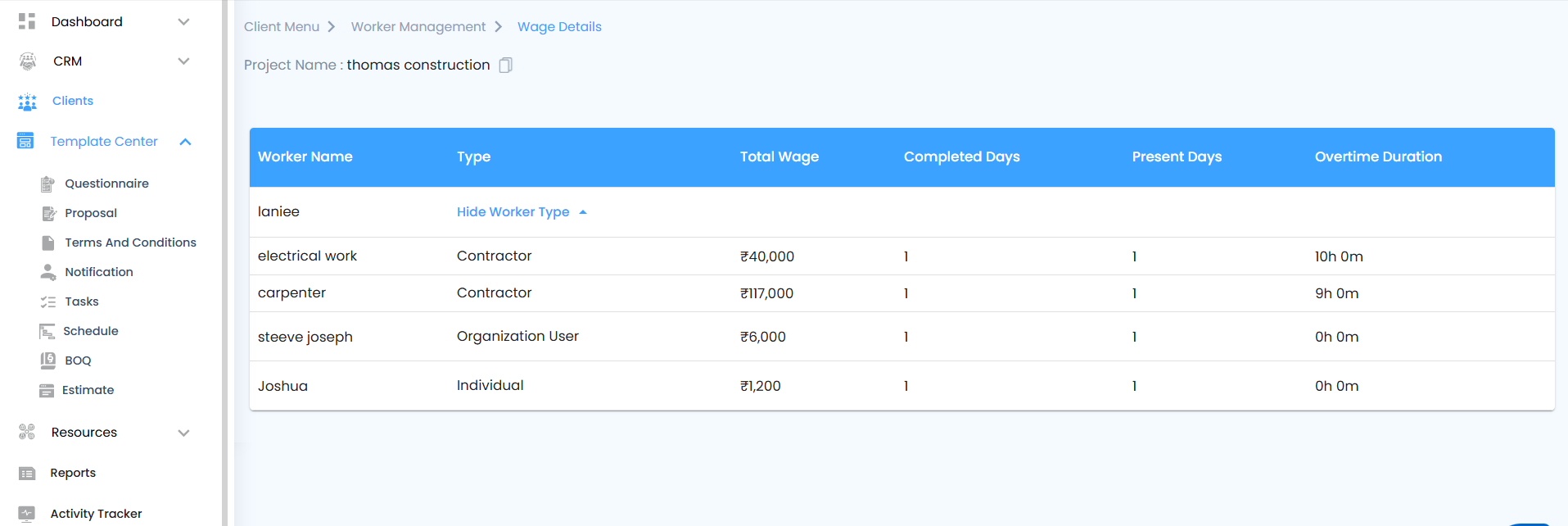 Think of Wage Details as your project’s built-in paycheck calculator. It doesn’t just list numbers — it translates attendance, timesheets, and overtime into real financial insights. Every shift, every worker, every rupee (or dollar) is accounted for, crystal clear.