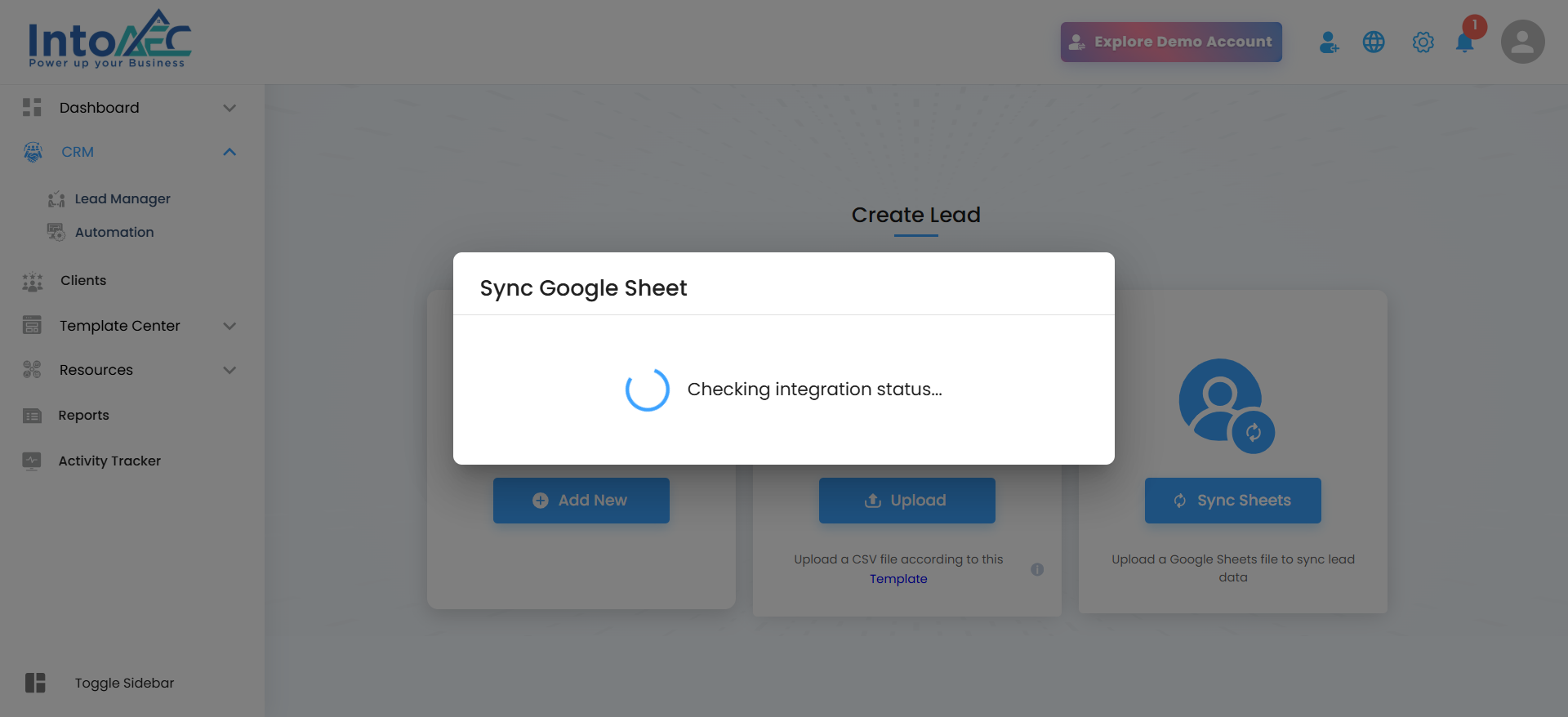 - When selected, a pop-up titled “Sync Google Sheet” will appear, displaying the message “Checking integration status…”