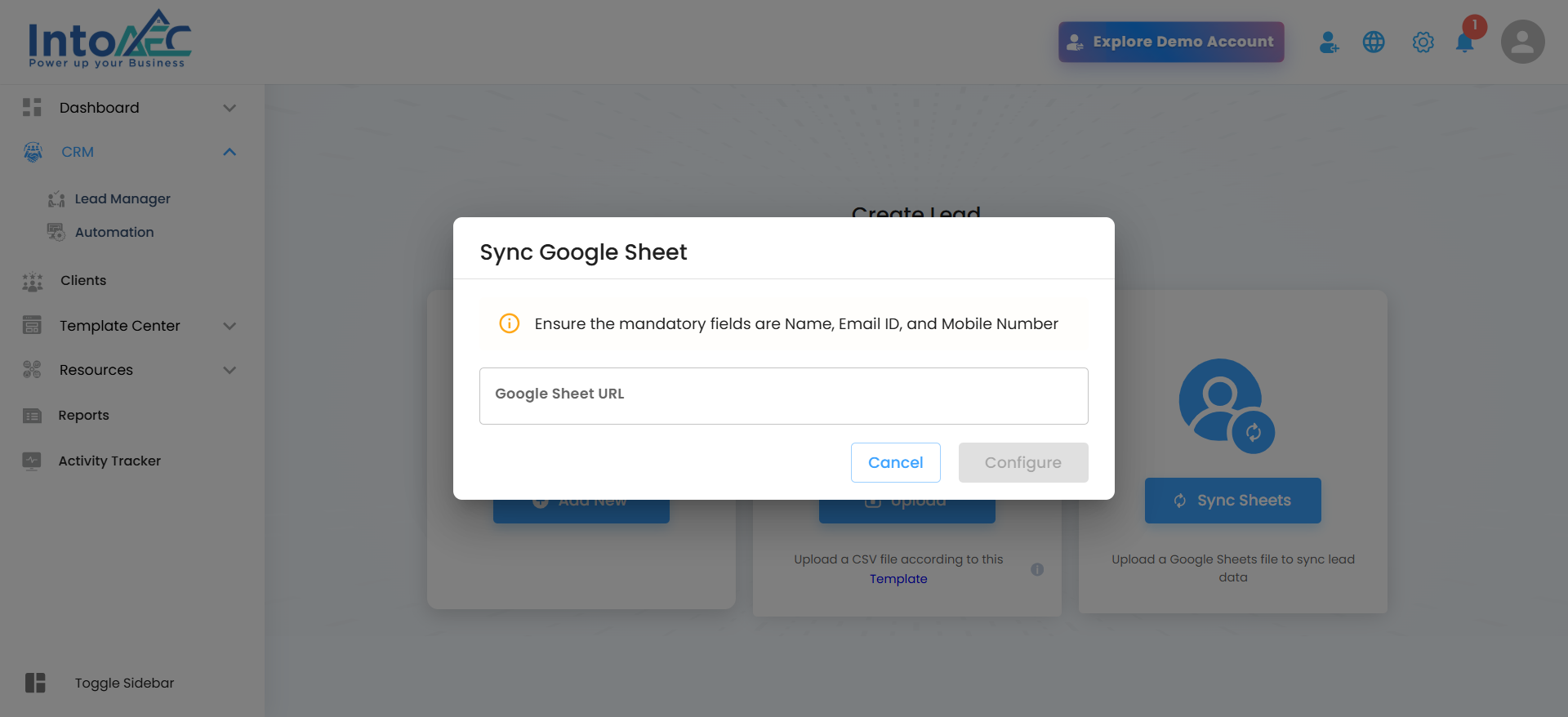Tired of manually typing in leads or client details? With Google Sheets integration, you can bring your contacts straight into IntoAEC — quick, seamless, and perfectly organized. Whether it’s hundreds of leads or a few key clients, syncing your sheet keeps everything accurate and instantly accessible inside your CRM.