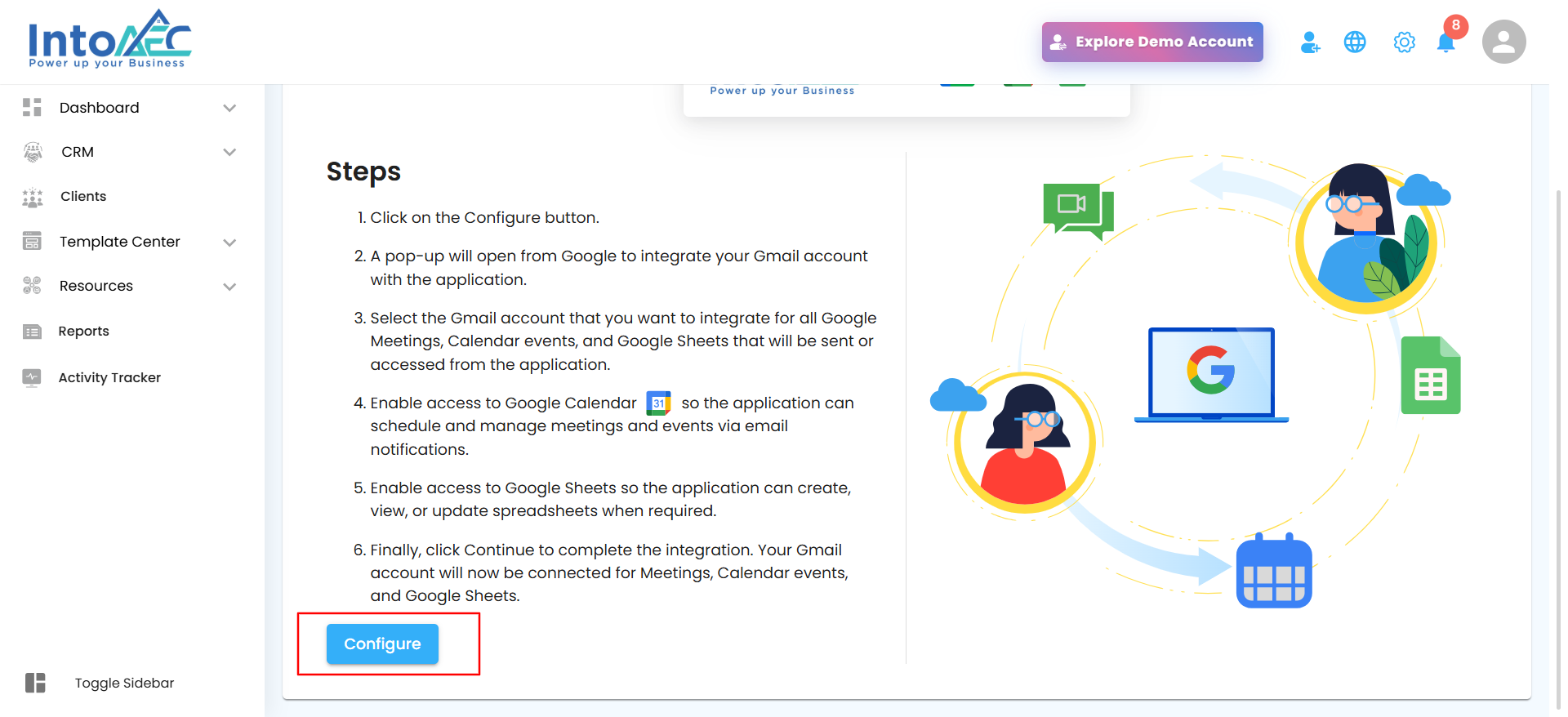 - “Google Calendar integration is not configured. Please configure your Google account to continue.”
