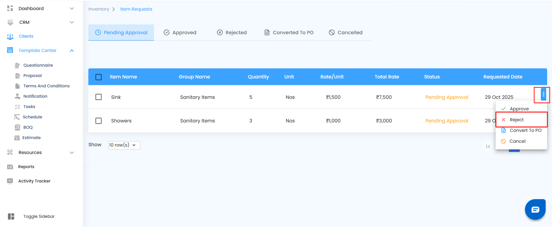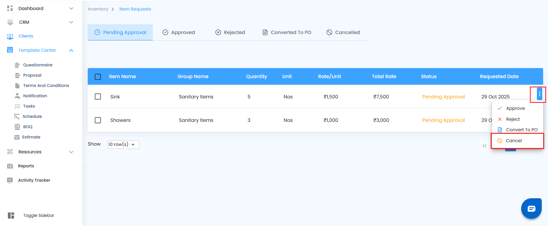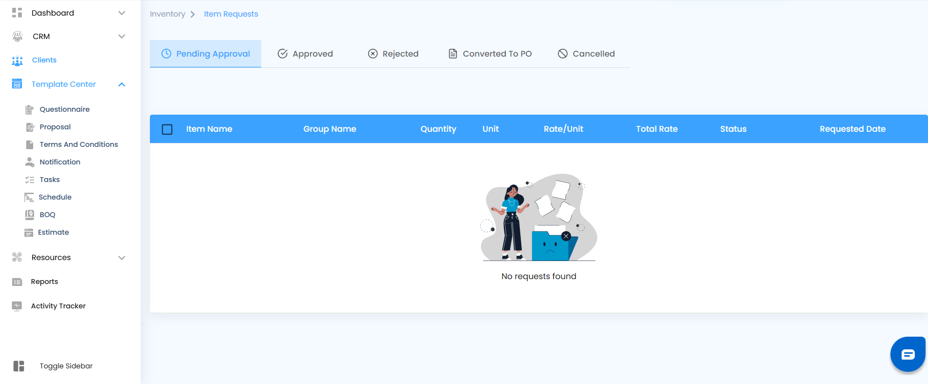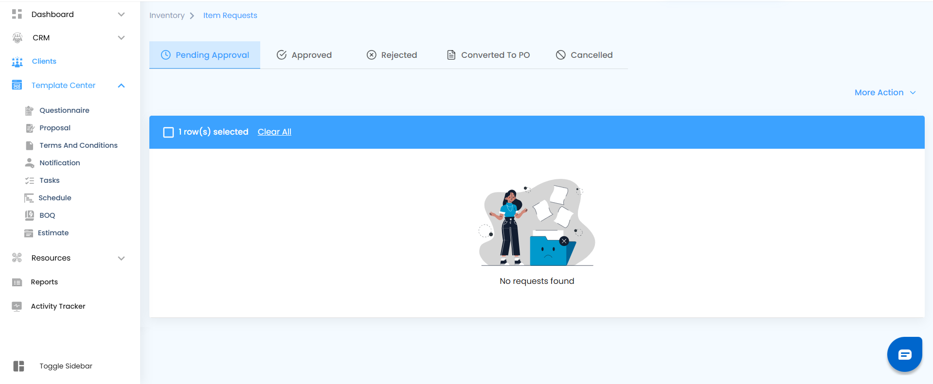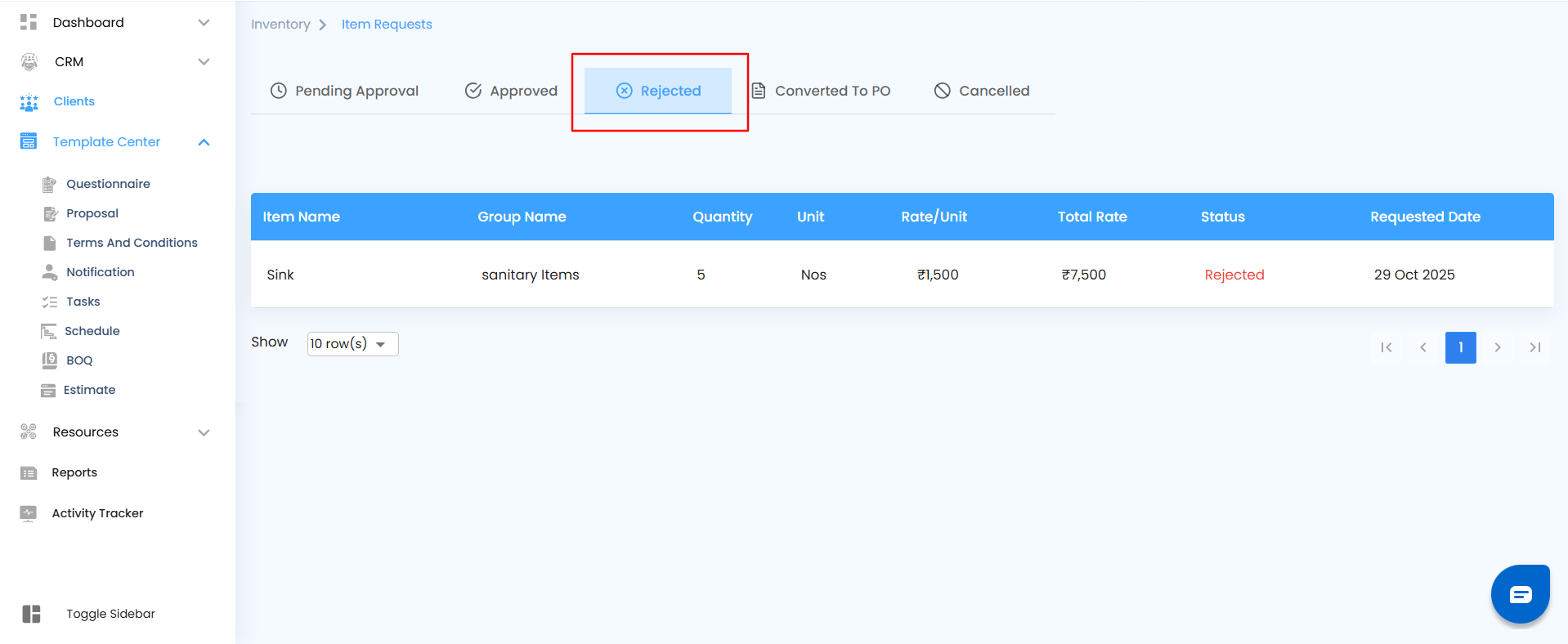 - Rejected, Converted to PO, and Cancelled – These tabs hold items that have been rejected, converted into purchase orders, or cancelled, giving you complete visibility into every request outcome.