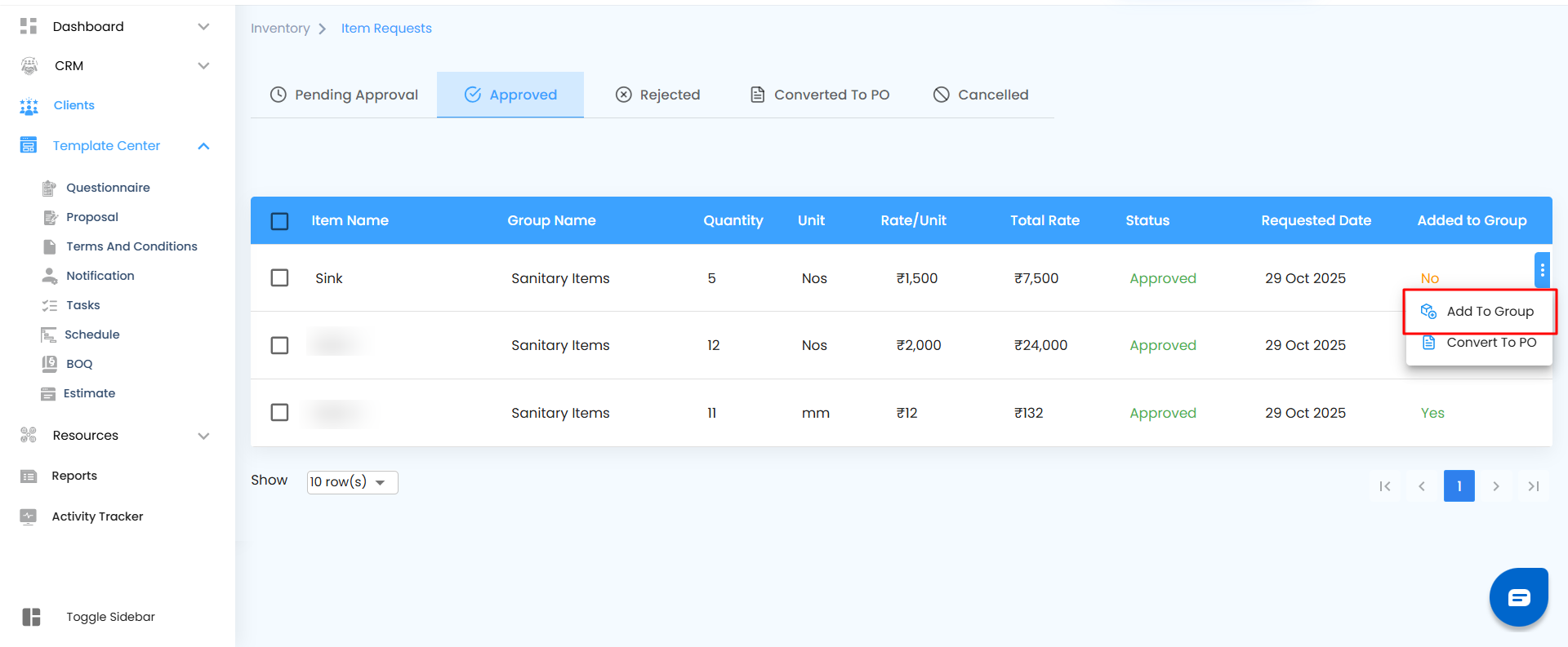 All item requests that clear the approval stage move straight into the Approved tab. This is where every green-lighted request is ready for the next step—either grouped for organization or converted into a purchase order for procurement.