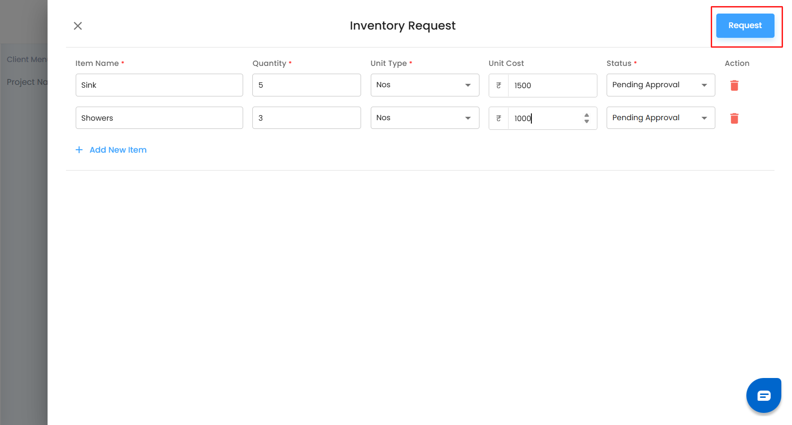 Clear and precise when adding items. Well-detailed requests get approved faster, keeping your inventory organized and your project running seamlessly.